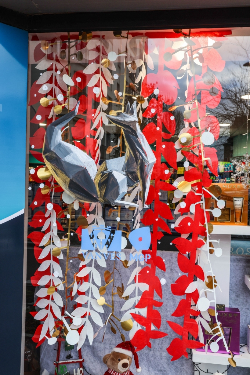 La ville de Vanves a vraiment des airs de Noël à quelques jours du réveillon, avec ses illuminations, ses 750 m de guirlandes, ses grands sapins, et ses vitrines décorés, dans une cinquantaine de magasins, grâce aux créations de Romain Benoit, peintre vanvéen qui a dessiné rennes, renards, ours, écureuils et oiseaux d’hiver, avec des rideaux végétaux fabriqués à Vanves par l’entreprise  Procédés Chenel International qui habillent les vitrines aux couleurs des fêtes.