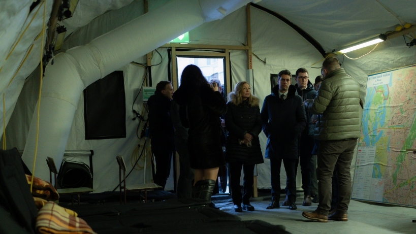 Lors de ses visites sur le terrain, il a vu le froid, comment la vie s’organise désormais dans des tentes de fortune, au pied des immeubles (sur la photo) et surtout « une immense dignité face à brutalité » de la Russie qui « poursuit méthodiquement ses frappes sur les infrastructures essentielles avec l’objectif de couper l'électricité et le chauffage à des centaines de milliers de familles ukrainiennes ».