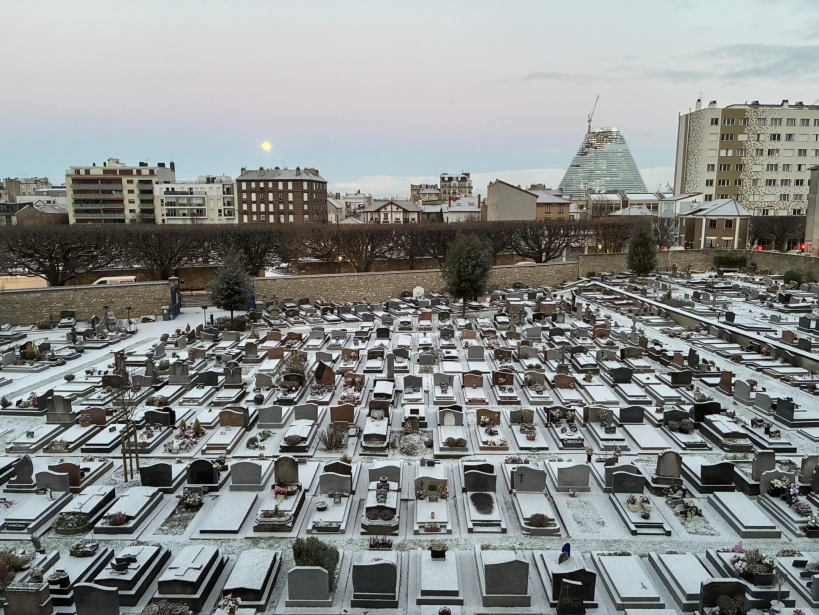Cette Rentrée des vacances de Noel est marquée à Vanves comme dans toute la région Ile de France par la neige qui a commencé à tomber en milieu d’après-midi lundi, et devrait encore ré-apparaitre aujourd’hui, entrainant depuis hier, ce gel qui rend les sols glissants. Les équipes de salage de GPSO étaient mobilisés bien sûr, le département étant en vigilance « jaune grand froid »et «orange neige et verglas ». Des rues à la pente raide, étaient bloquées comme Falret et Victor Hugo dans la partie le long du lycée Michelet. Les parcs et jardins étaient fermés afin de afin de permettre le dégagement et la sécurisation des cheminements, la collecte des déchets de lundi soir étant reporté au lendemain. Des photos sur les réseaux témoignent de cet épisode neigeux place des Provinces, devant le cimetière communal avec un sommet de la tour Triangle presque dans le brouillard lundi soir.